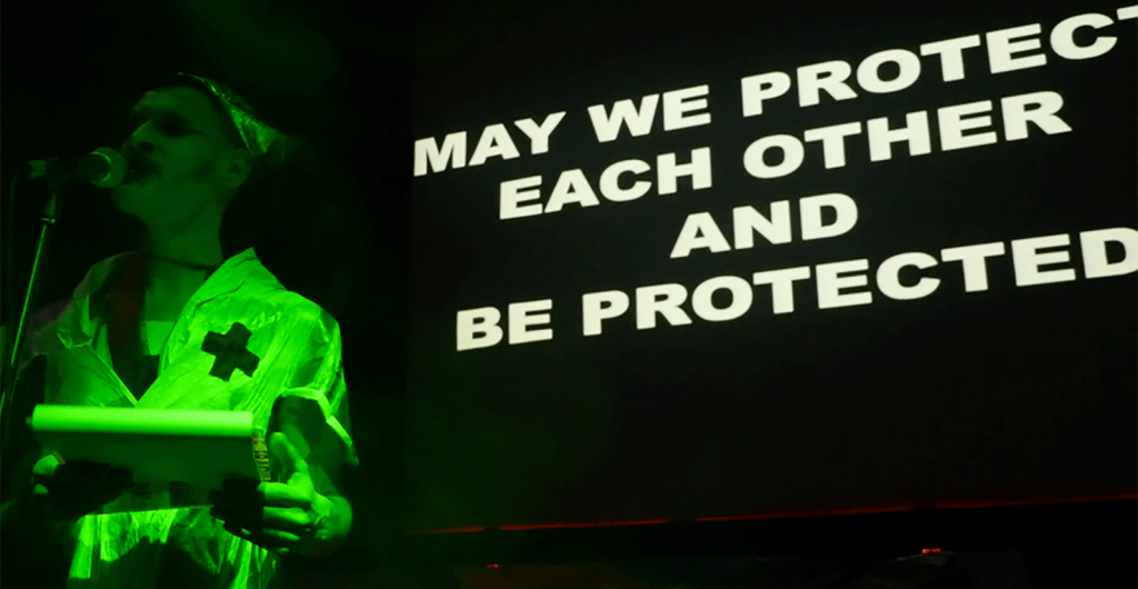 Not feeling so well? You Ok Bitch?? In a sock puppet ridden animated and politically charged DIY lecture performance, get ready to process the COVID complicated now, the politics of critical care and impossible repair. Hosted by Jeremy Wade’s 5000-year-old drag alter ego, The Battlefield Nurse. You Ok Bitch?? engages humor as an age-old form of social protest. We think fiction is the best way to talk about the complexity of the present. We work with the balance of intense pessimism and optimism to find the sweet spot of a difficult, cranky, queer version of hope, to dream otherwise about less violent futures.