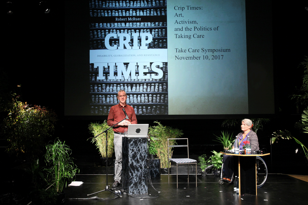 Take Care is a three-day symposium founded on the relational ethics that disability culture has both established, and still demands. The symposium gathers disabled and disability-allied artists, activists, social workers and theorists. Together, we critically reflect on care. For us, taking care means formulating new tools for navigating the interdependence required to untangle the static social/political agendas of our time. This is work of activation, as much as elaboration. In line with the perspective of numerous disability activists we take care not only as a past/present/future medical issue for all—but as a social, creative and political strategy.