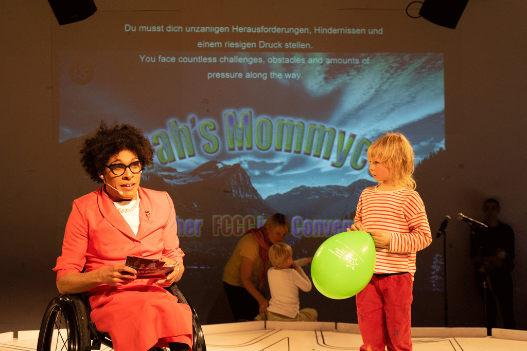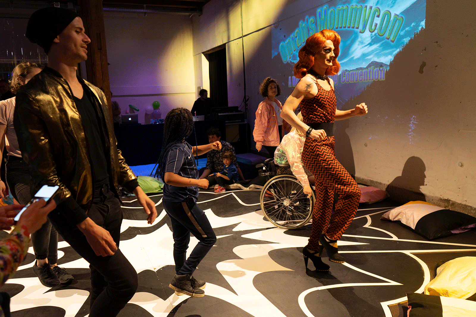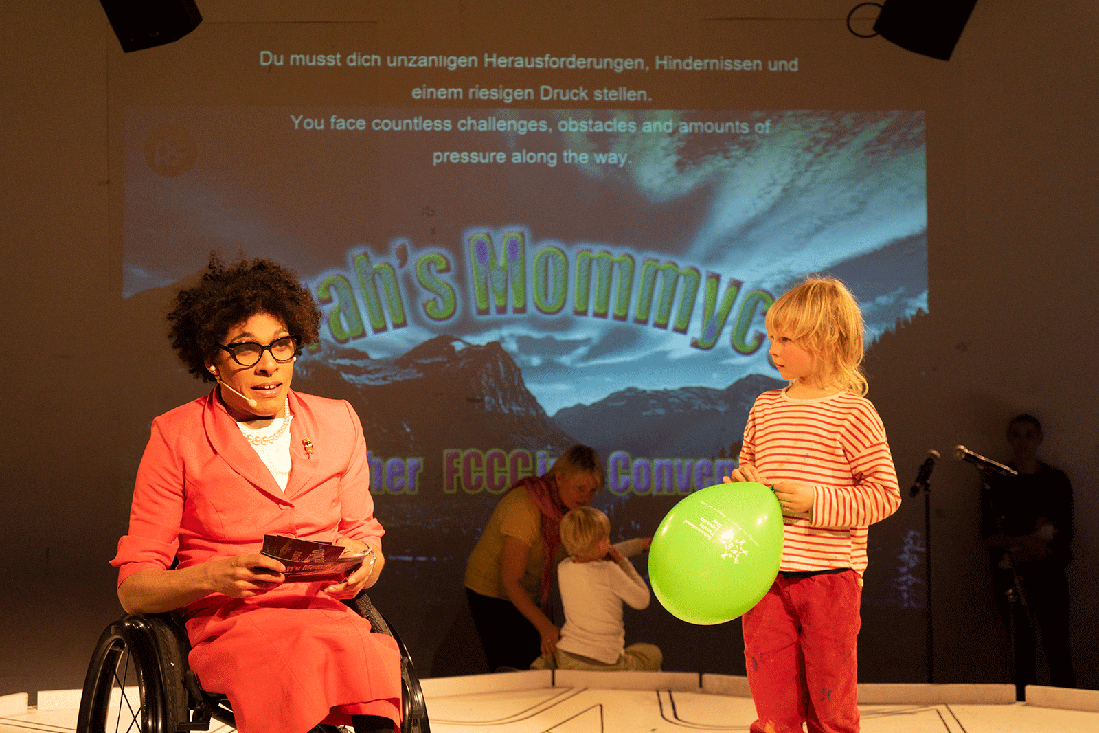 We want to expand the definition of mothering and celebrate queer mothers, disabled mothers, welfare mothers, sci-fi mothers, mothers of dragons and figurative mothers. In its fifth edition, FCCC Zurich took place on a Saturday afternoon, making sure that its accessible to biological and chosen families with kids or without. Featuring drag entertainment for all ages, a play corner for little ones, as well as a satire talk show format that used black humour to explore Mommy’s darker sides and the outdated morals that surround her.