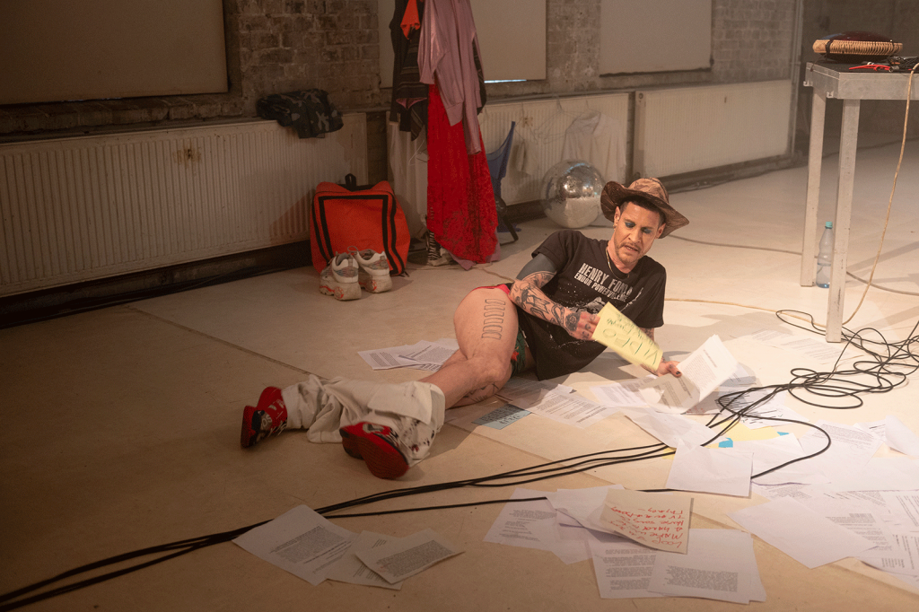Presented at Dock 11 (Berlin), Songs of Oh and Woe was an experimental concert/weird lecture by Jeremy Wade and Bráulio Bandeira (DEEPNEUE) that braided folk traditions and queer oral histories with electronic music, noise, ambience, and field recordings. Each artist arrived at the process with personal “archival footage.” The duo then conducted and transcribed a long-form interview (childhood nightmares, what family was like, first sexual experience, conversations about class, early shame), edited it with love, and performed the resulting script live as a sung/spoken/movement score.