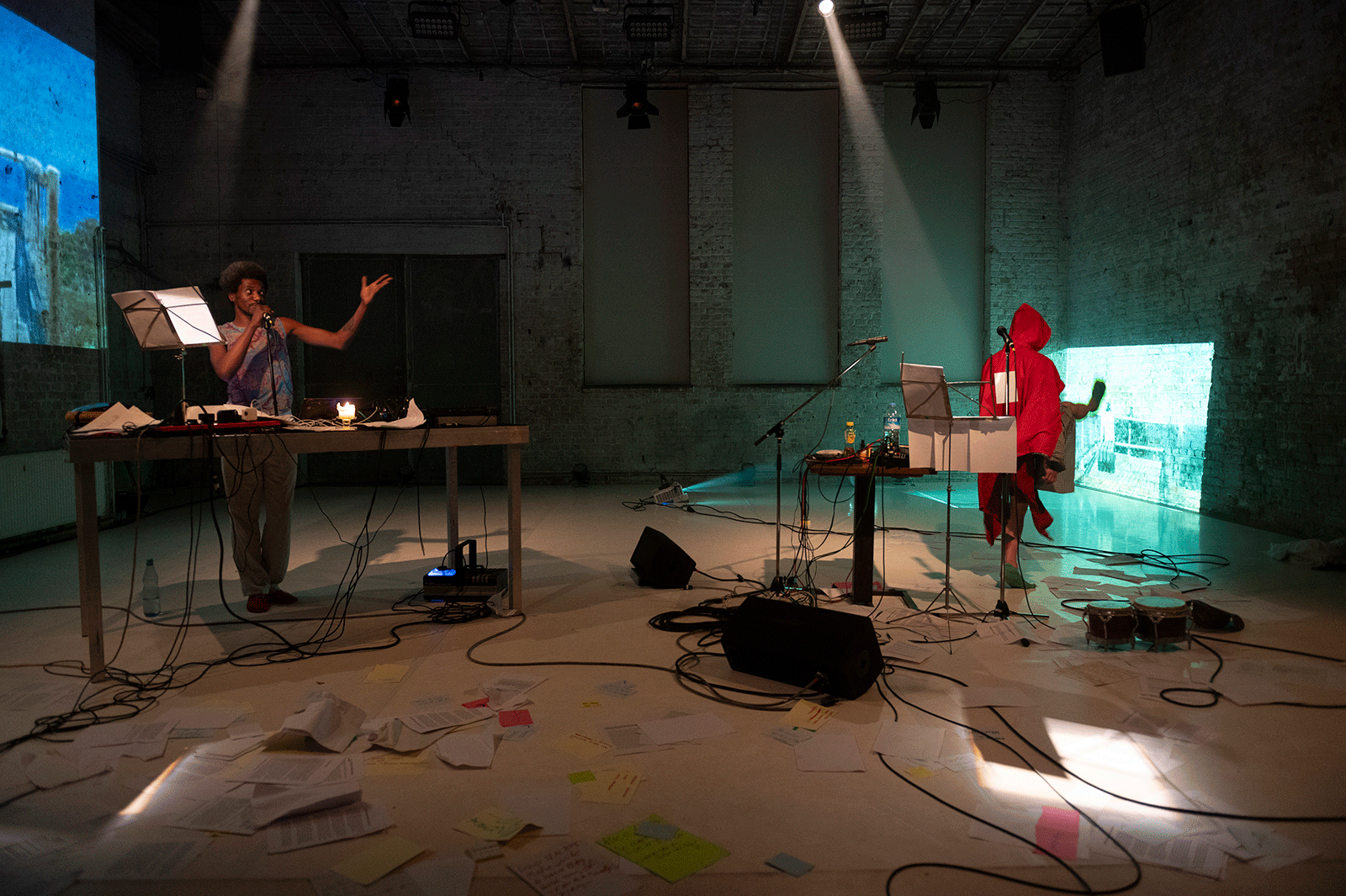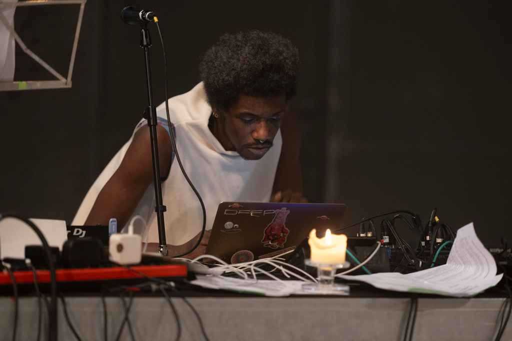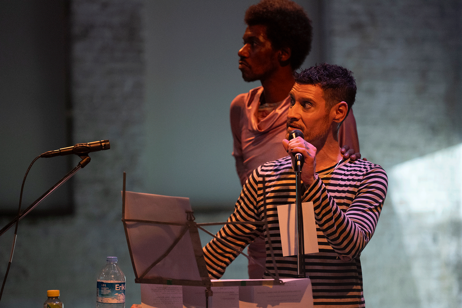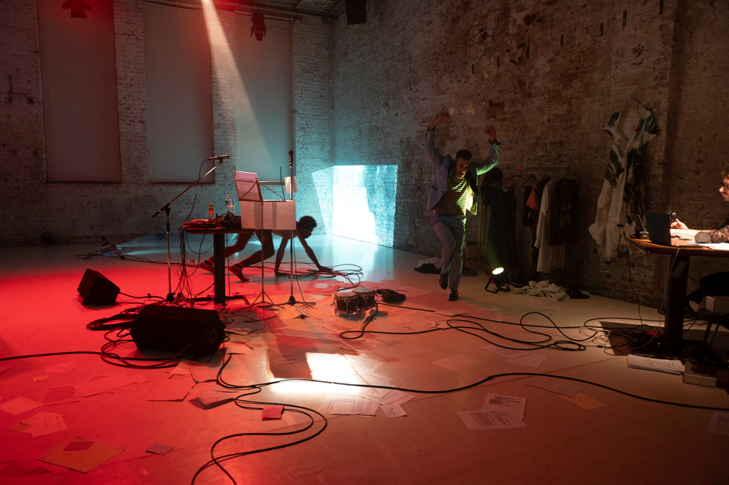 The piece was a real-time remixing of a supercharged strange encounter, where archival video footage refracted with different depths of memory in a complex mess of a concert-essay. Auto-theory and lived experience met movement and sound, as Wade and Bandeira co-authored vivid atmospheres of the 'oh' of life and the 'woe'.