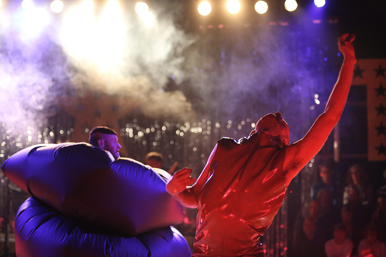 Turn of the century circus saves contemporary performance! Satisfaction of curiosity, economization of self and an exhibit of exoticism: in a spectacular circus show fourteen international artists from the fields of choreography and performance rise to the challenges the 21st century has placed on man and connect the risks of body art with the spectacle of physical fitness.